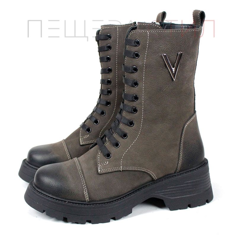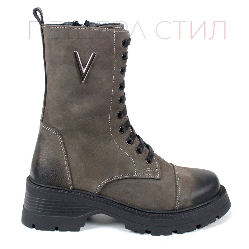 Дамски кубинки Terra Vento – естествен набук, тъмно сив