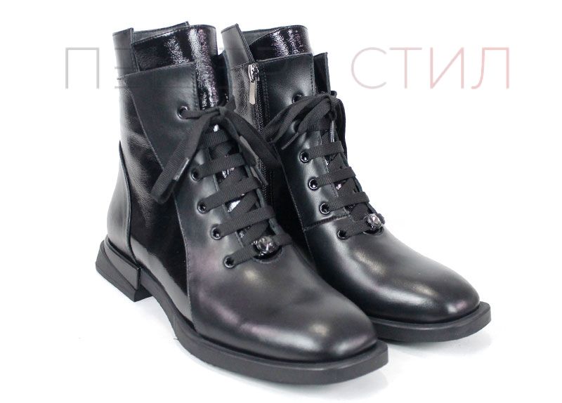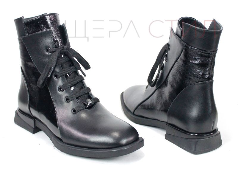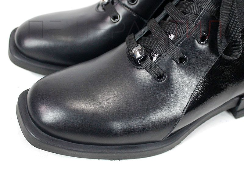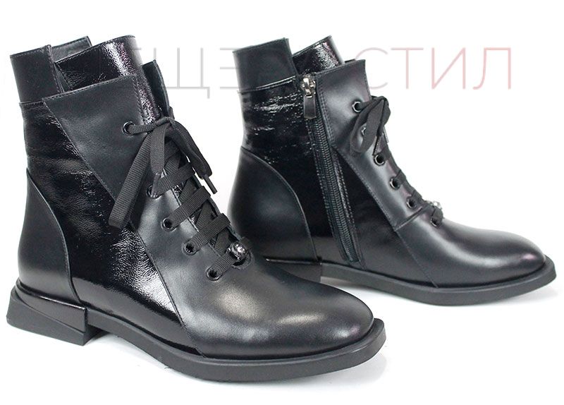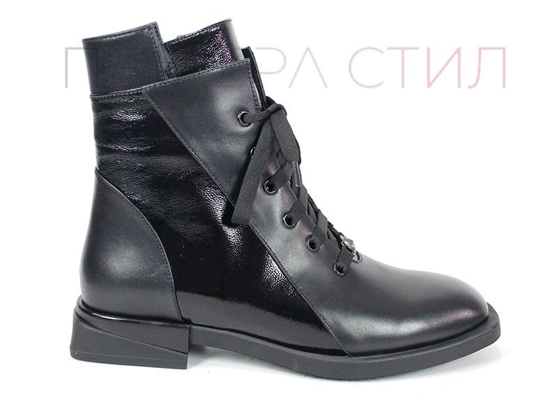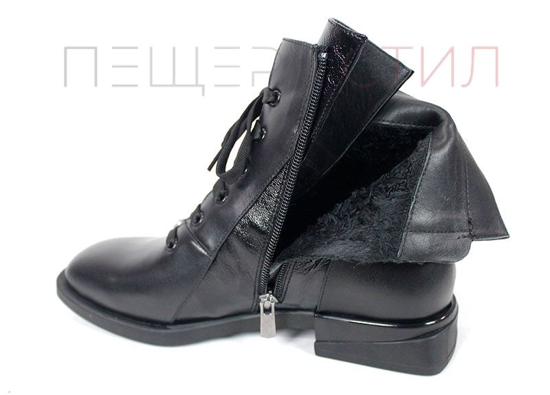 Модел Luna Elegante съчетава естествена кожа и лак за модерен контраст и луксозно излъчване. С удобен цип от вътрешната страна, връзки и топъл хастар – идеален избор за стил и комфорт през студените дни.