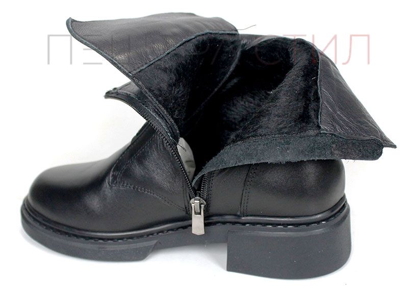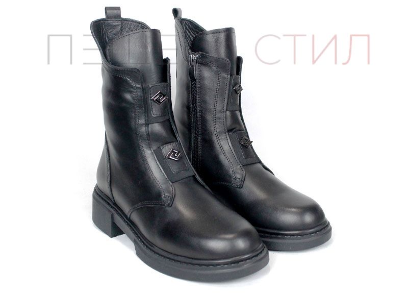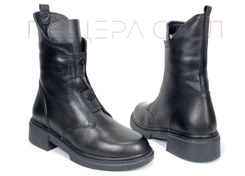 Дамски боти Nero Passo от черна естествена кожа с два широки ластика отпред и цип от вътрешната страна. Модел с плюшен хастар и стабилно ходило с нисък ток – елегантен, практичен и създаден за комфорт през целия ден.