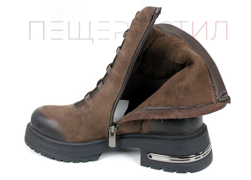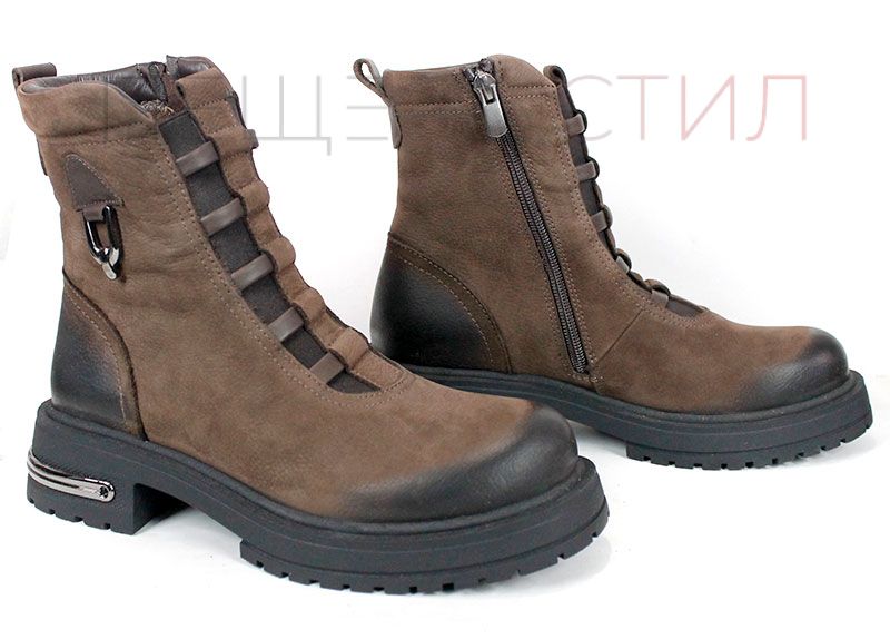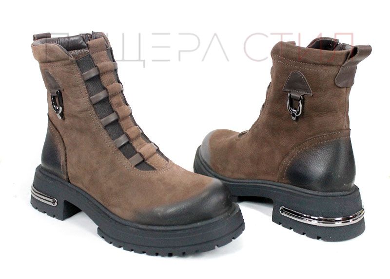 Terra Valen – боти, които съчетават модерен дизайн и стабилност. Изработени от естествен набук с потъмнени детайли, широк ластик отпред и каишки, наподобяващи връзки. Цип от вътрешната страна, зимно ходило с нисък ток и тънък топъл хастар от трико.