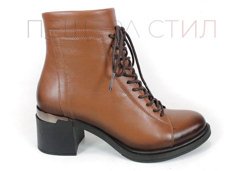 Дамски боти Nera Forte от естествена кожа в светло кафяв нюанс. Модел с връзки и цип за удобство, стабилен ток и елегантно оформен връх. Съчетава класика и съвременна визия – идеални за стилна градска есенно-зимна визия.