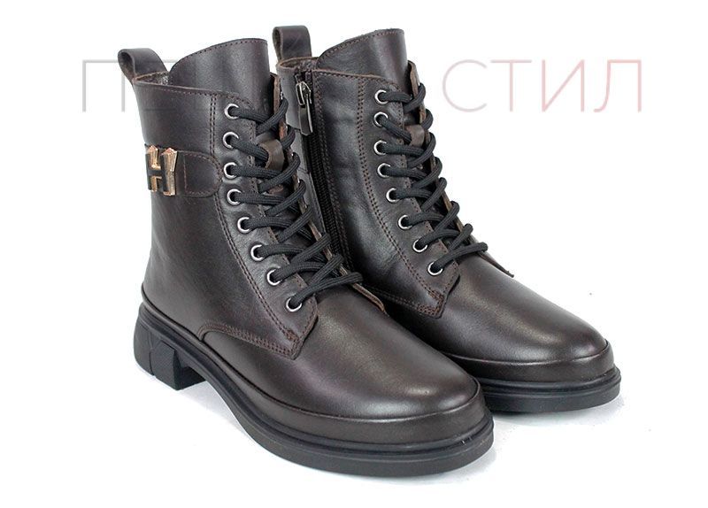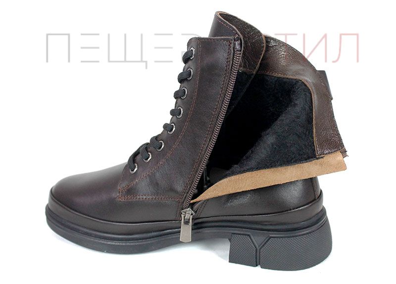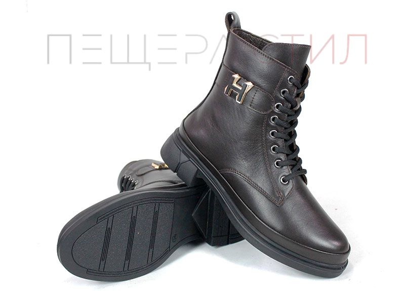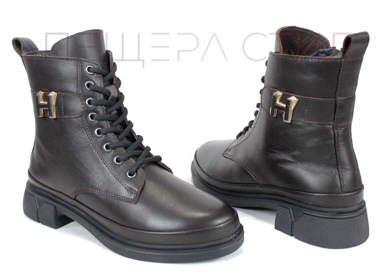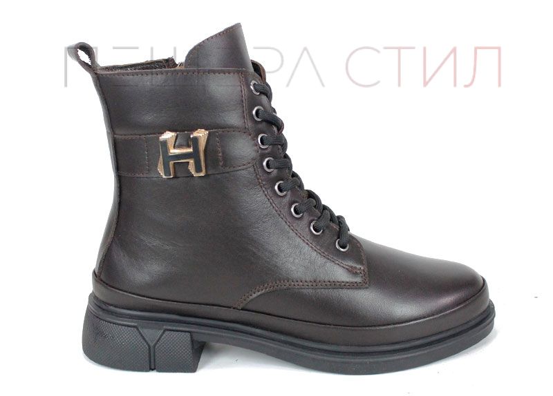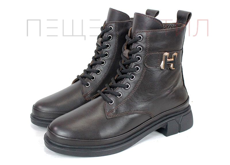 Noir Forte – дамски кубинки от естествена кожа в тъмно кафяво