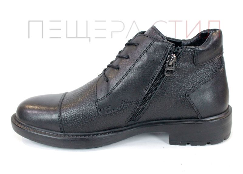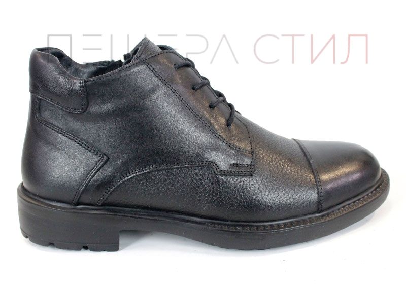 Моделът Notte Urbano е създаден за мъжа, който търси надеждност, стабилност и премиум качество през студените месеци. Комбинацията от черна естествена кожа – напа и флотер – дава едновременно елегантен вид и повишена здравина. Термо ходилото със зимен грайфер осигурява сцепление върху мокри и хлъзгави настилки, а тънкият топъл хастар със зимна стелка гарантира комфорт през целия ден. Практичната комбинация от връзки и страничен цип прави обуването бързо и удобно.