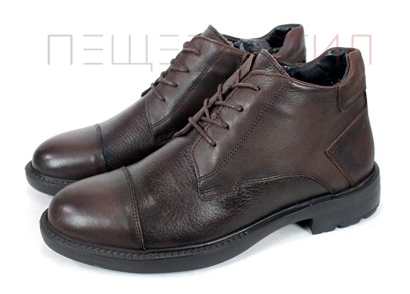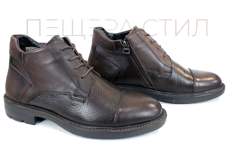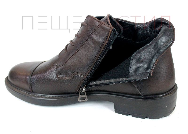 Мъжки боти Notte Urbano – кафява естествена кожа напа и флотер, топъл хастар и цип
