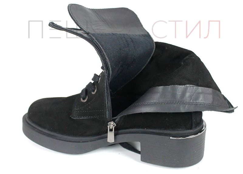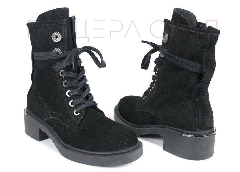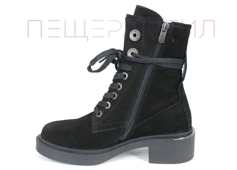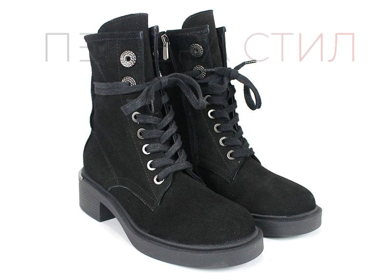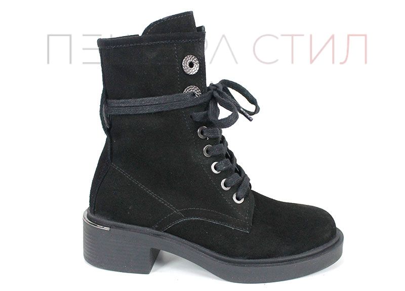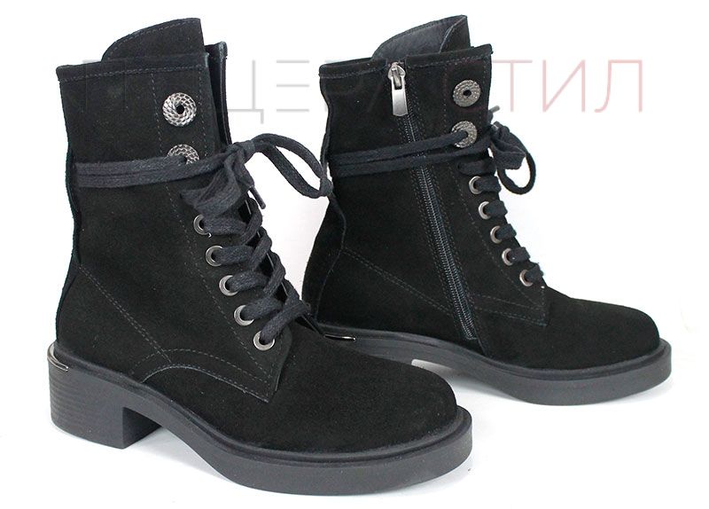 Dolce Fumo – дамски велурени кубинки в черно с връзки и страничен цип
