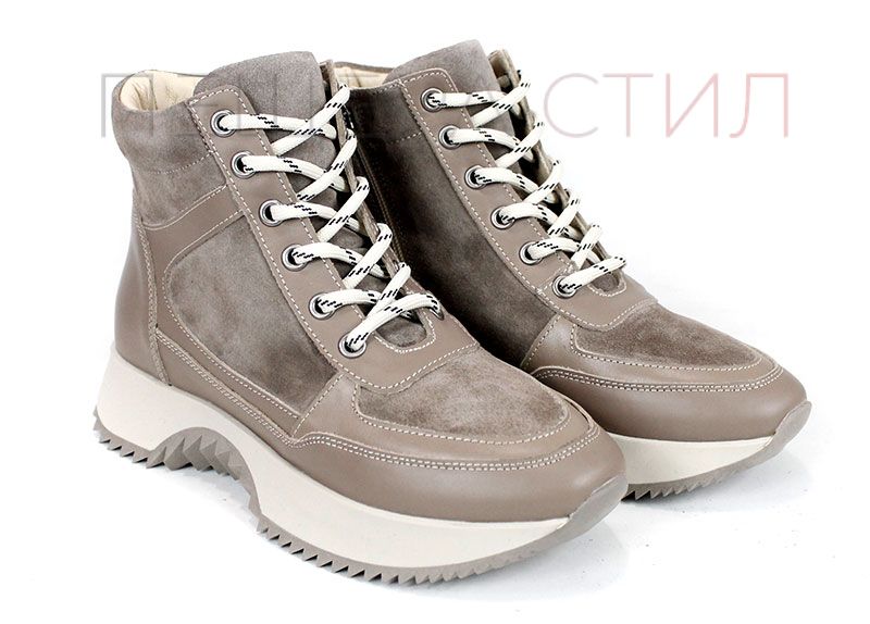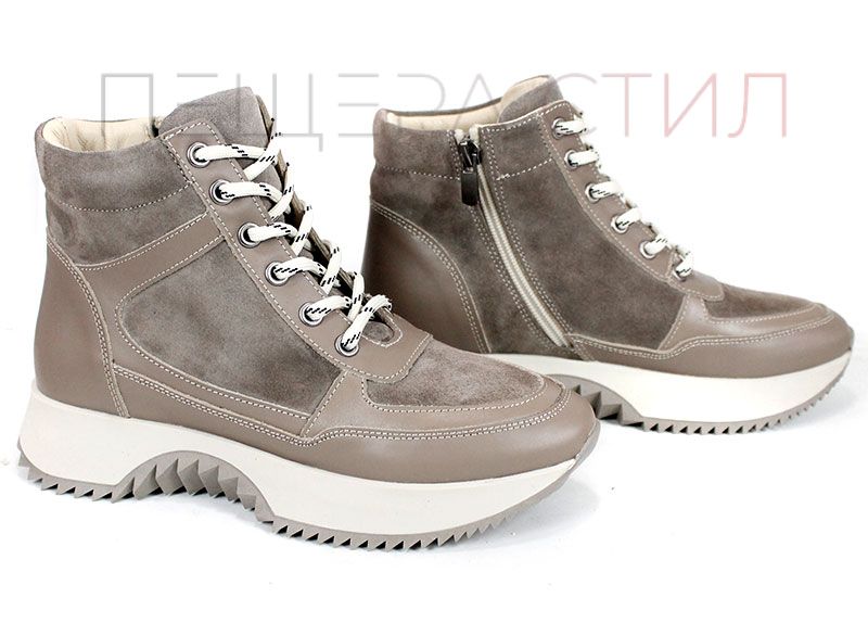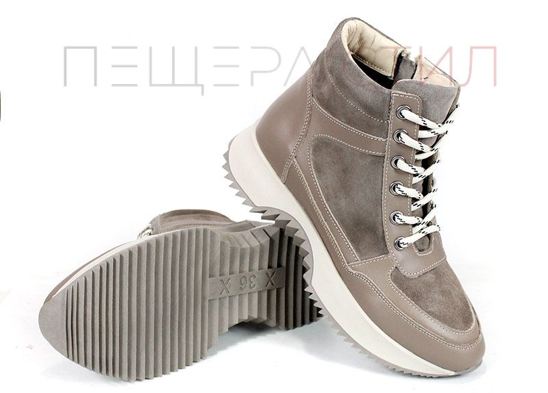 Дамски високи сникърси – естествена кожа и велур, топъл хастар, цвят визон - модел Rovere Alto