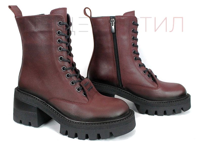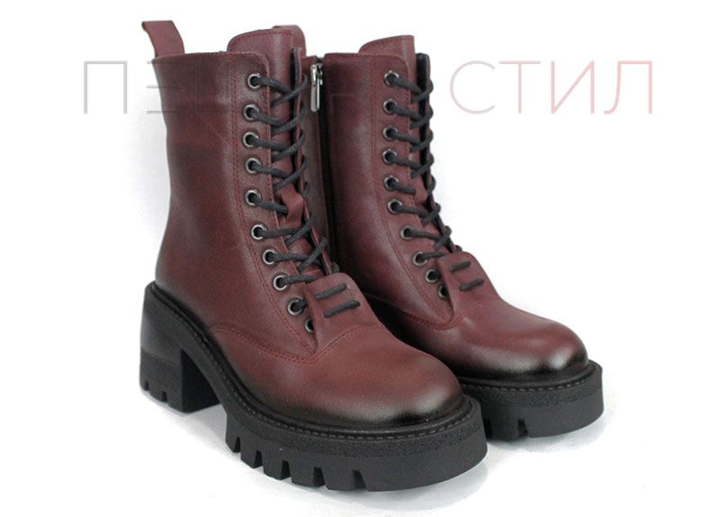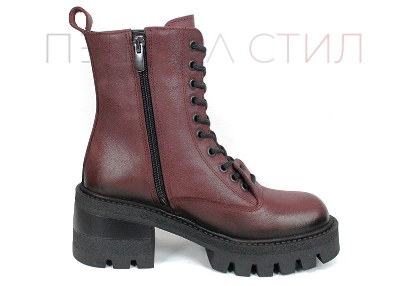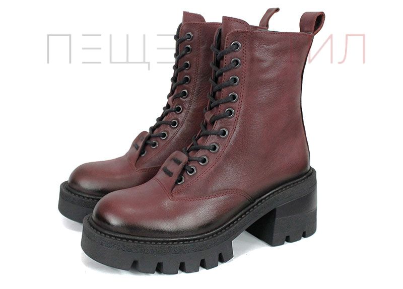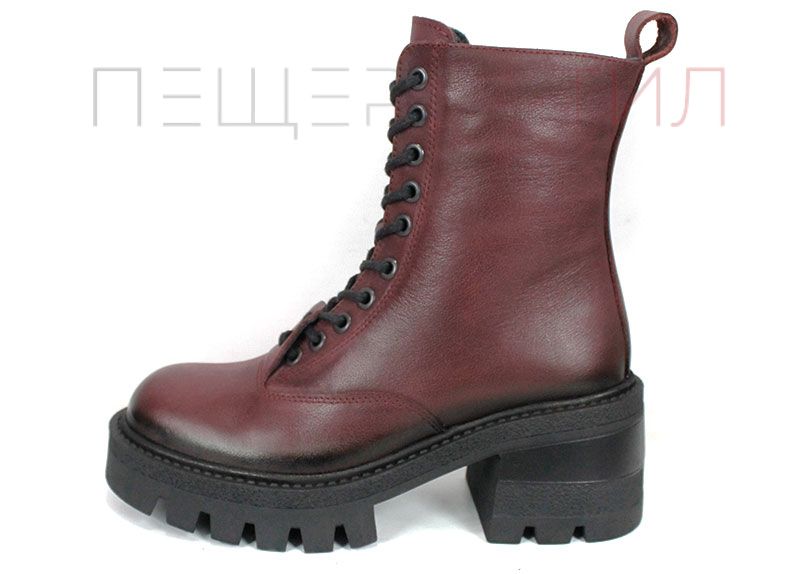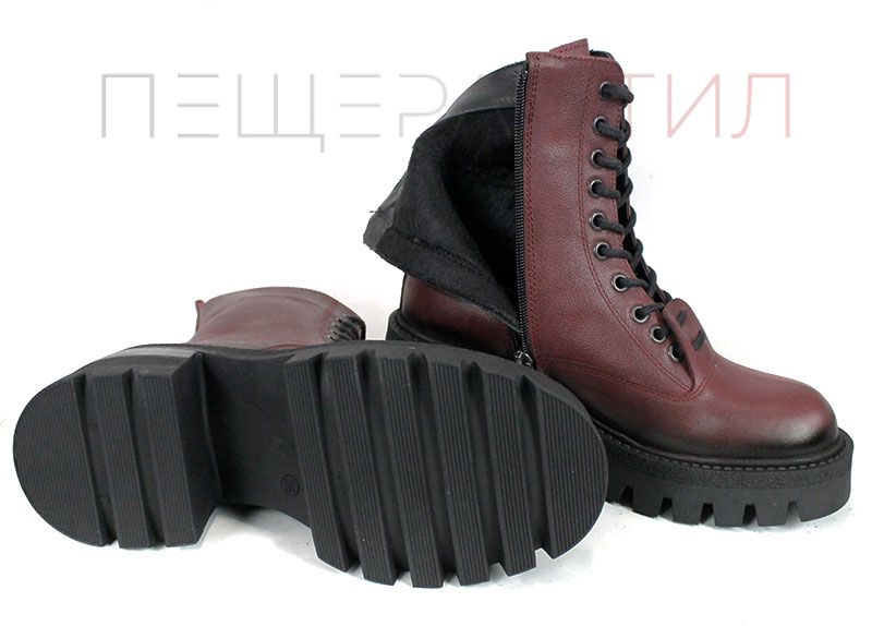 Rebel Rouge – дамски бордо кубинки от естествена кожа с топла подплата