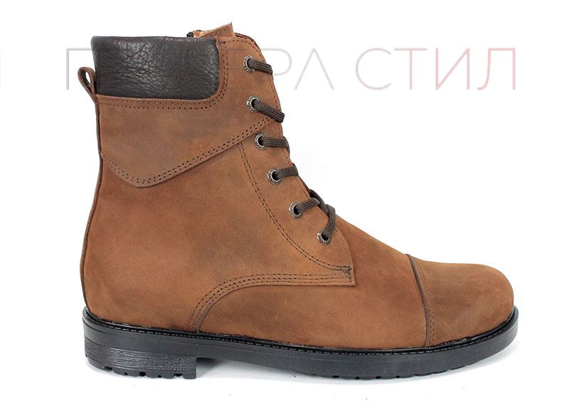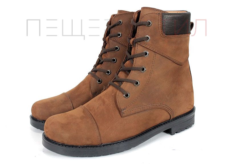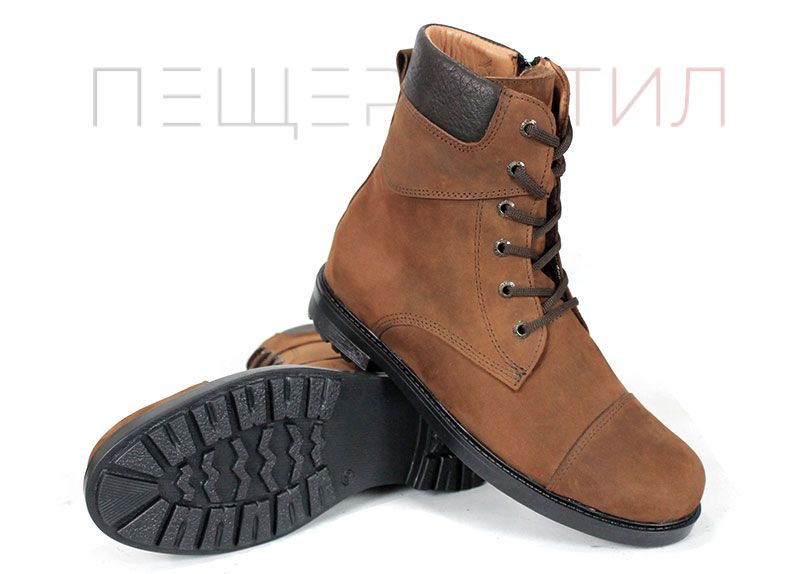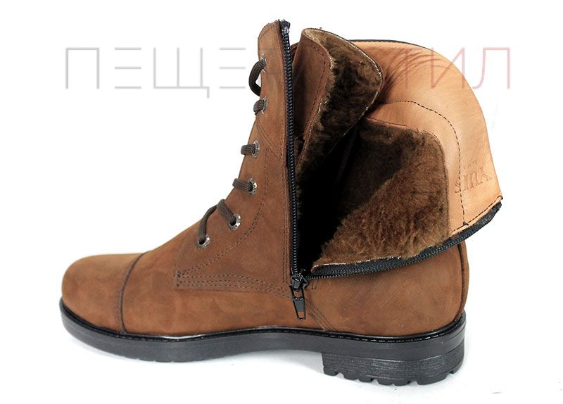 Мъжки кубинки от кафява естествена, "крейзи" кожа с цип и връзки, класическо каучуково ходило със зимен грайфер и плътен топъл хастар. Стабилни, удобни и подходящи за студените дни.