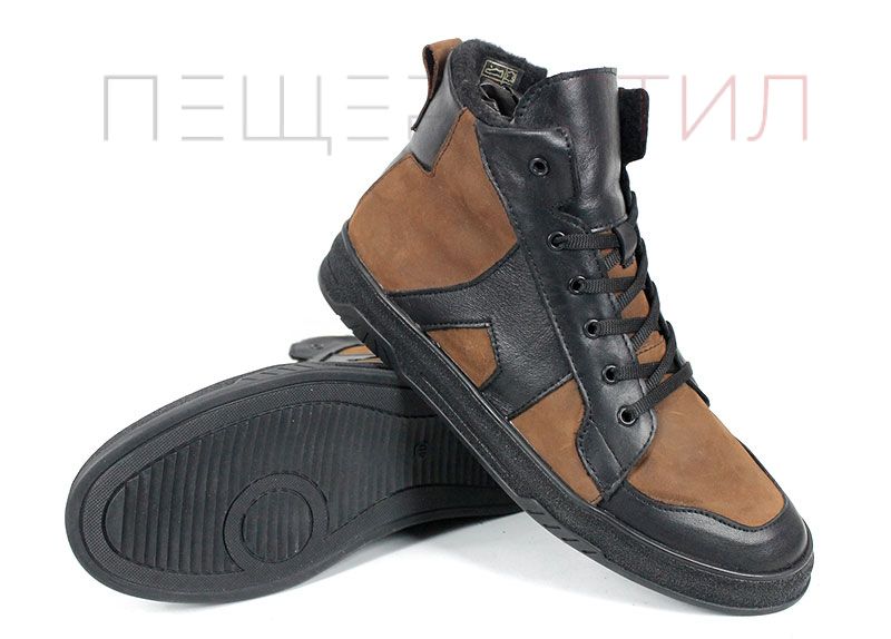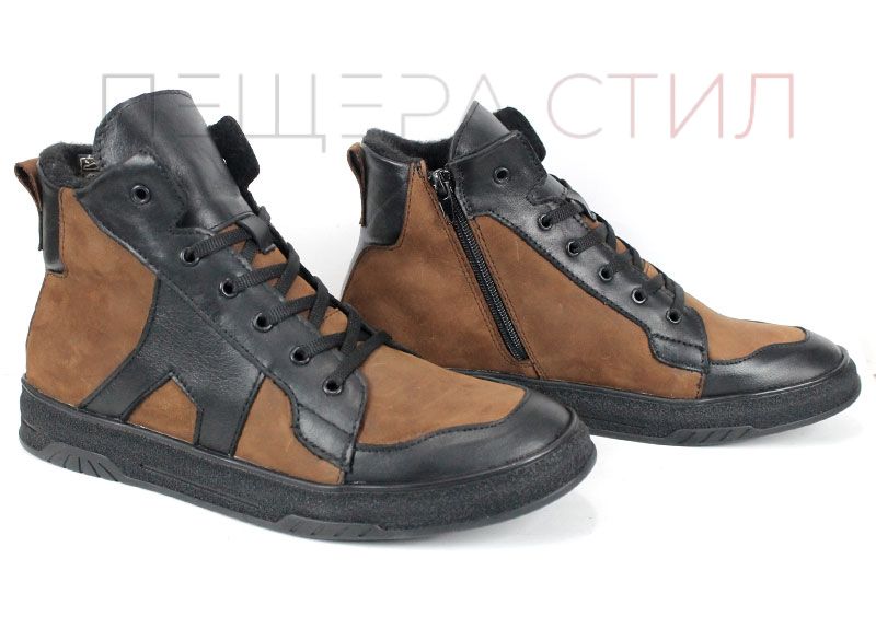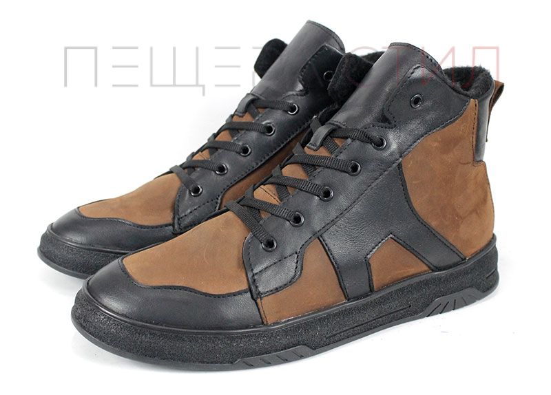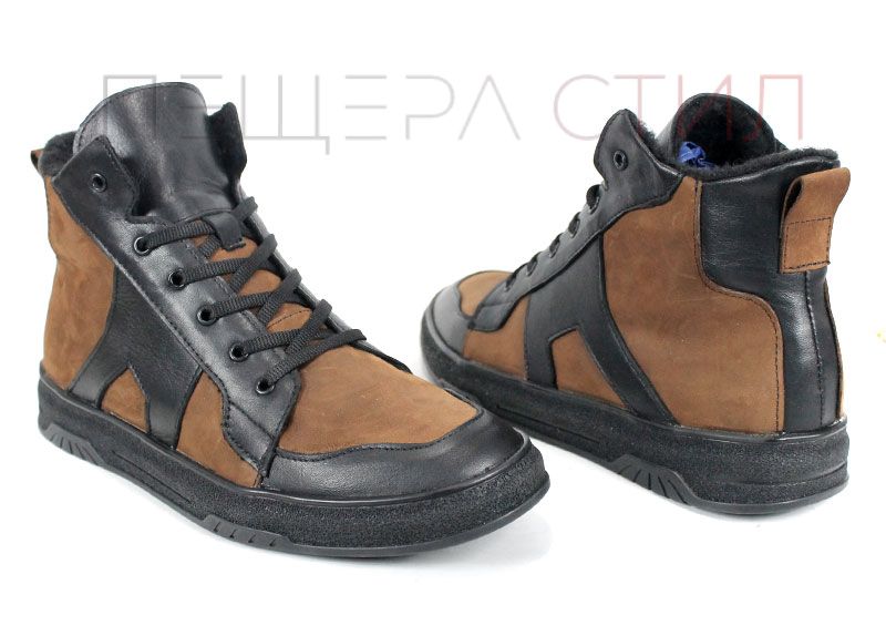 Мъжки спортно-ежедневни боти Strada Vero от естествена кожа – черно и светло кафяво