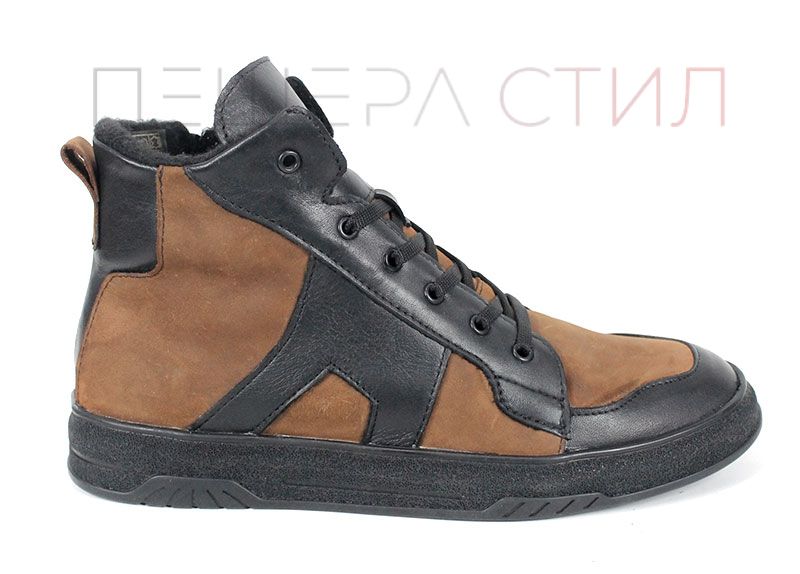 Мъжки боти Strada Vero със спортно-ежедневен характер, изработени от естествена кожа в модерна комбинация от черен и светло кафяв цвят. Моделът осигурява топлина, стабилност и удобство, подходящ за активно ежедневие през студените месеци.