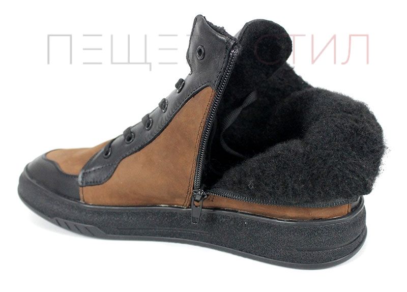 Горната част е изработена изцяло от висококачествена естествена кожа, устойчива и приятна на допир. Връзките позволяват добро регулиране по крака, а страничният цип осигурява бързо и удобно обуване.