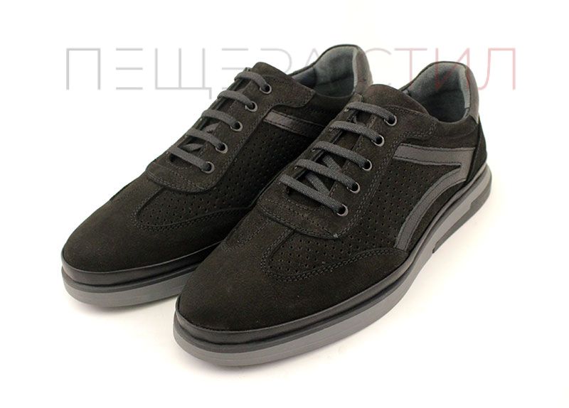 Преоценени мъжки ежедневни летни обувки от естествен набук в черно - Модел Енрике.