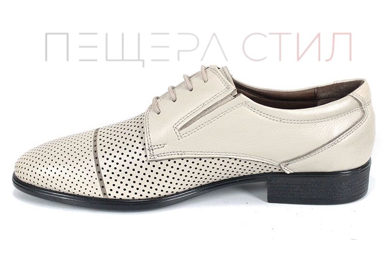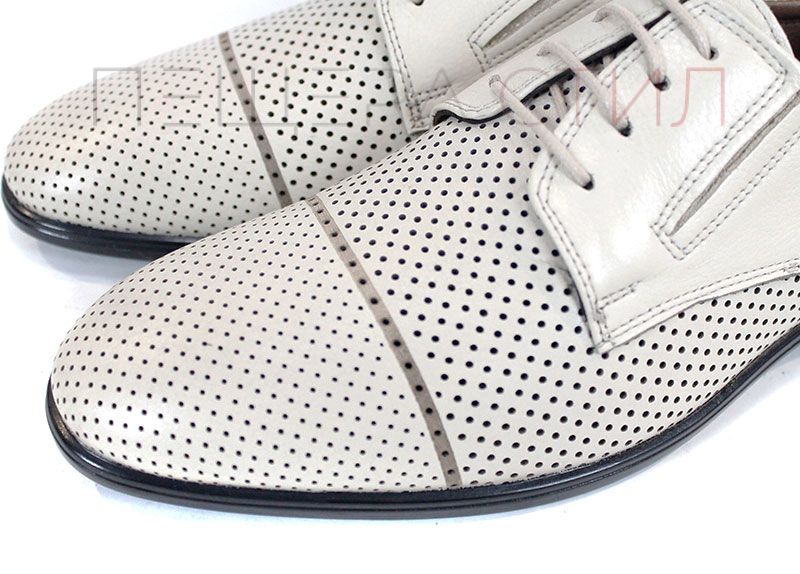 Vittorio Linea са елегантни мъжки официални обувки от естествена кожа в бежов цвят, създадени за топлите месеци. Ситната перфорация осигурява отлична вентилация, а комбинацията от връзки и дискретни ластици от двете страни гарантира комфорт и по-лесно обуване.