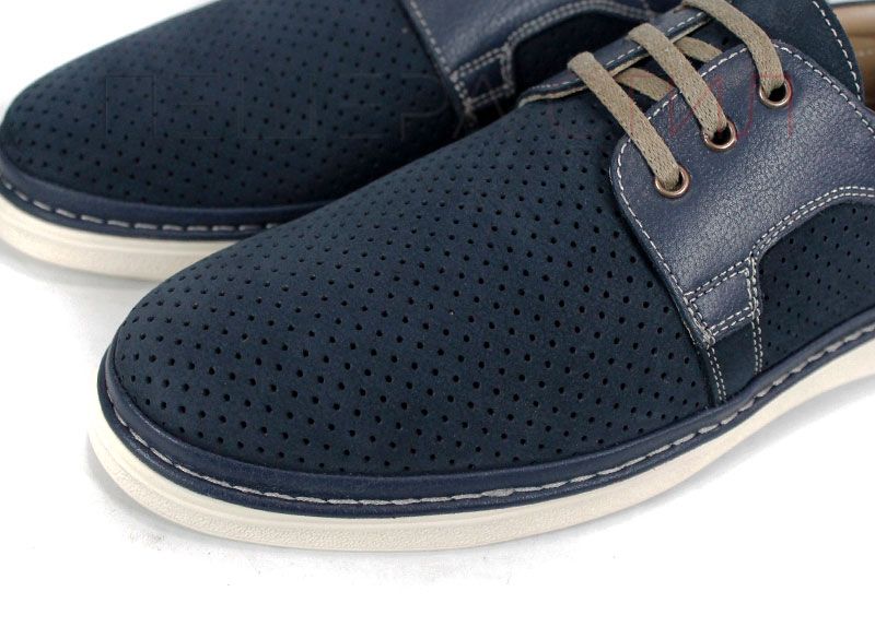Forma Lite е модел, който залага на практичност, проветривост и стабилност. Горната част комбинира перфориран естествен набук и естествена кожа, което осигурява отлична циркулация на въздуха и устойчивост при ежедневно носене. Тъмносиният цвят придава универсален характер – подходящ както за градска среда, така и за по-непретенциозен офис стил.