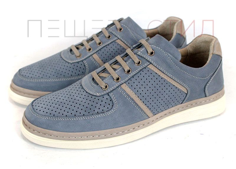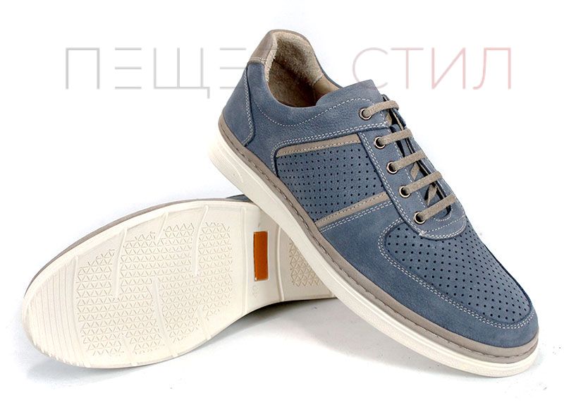 Verno Axis Denim – мъжки летни обувки от набук с перфорация в дънково синьо