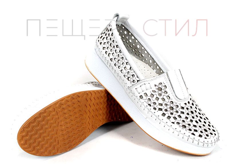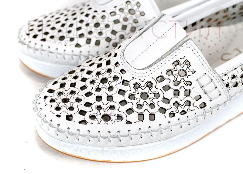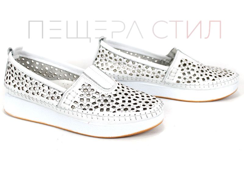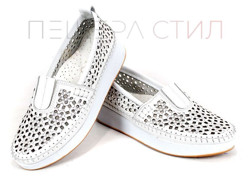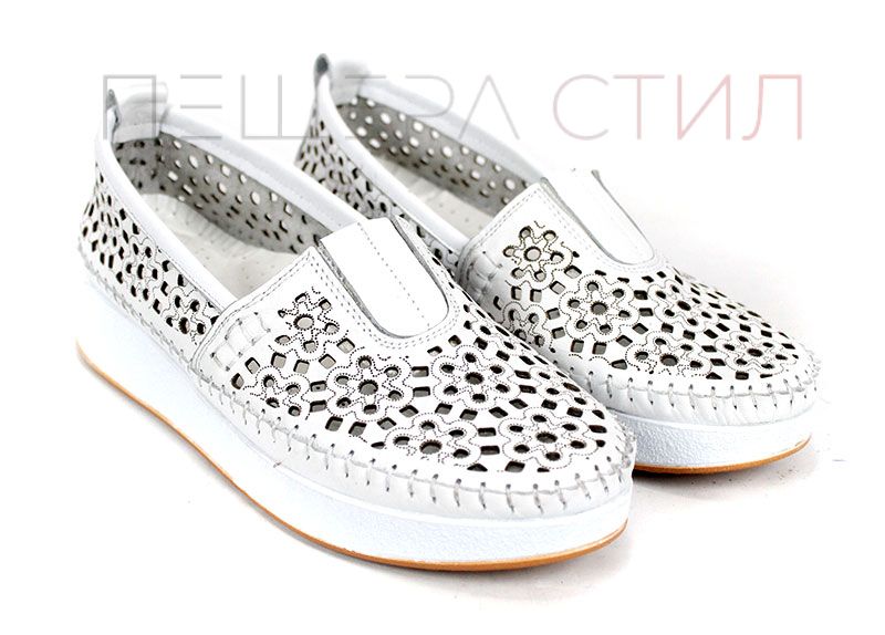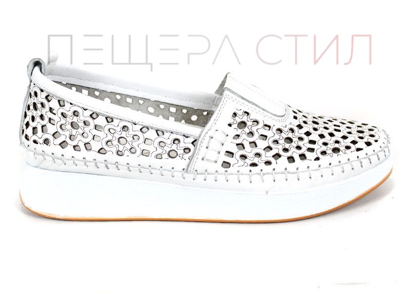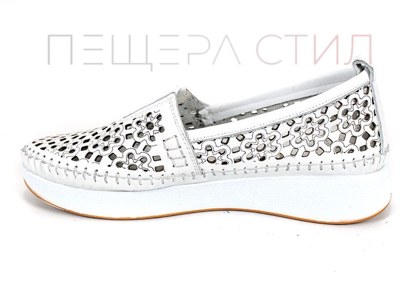 Mira Flow – дамски летни обувки от естествена кожа с перфорация в бяло
