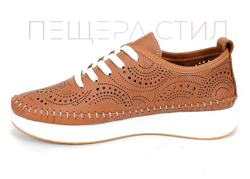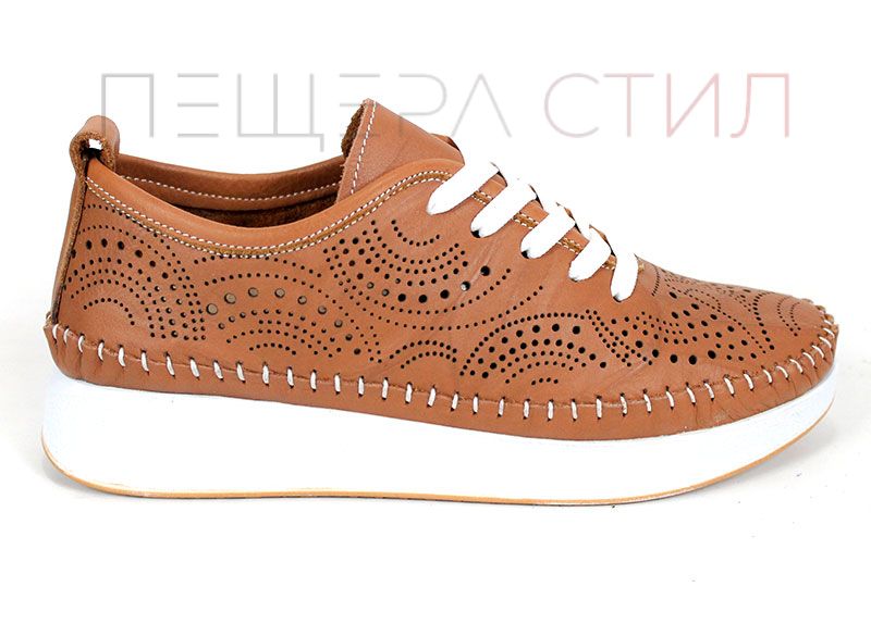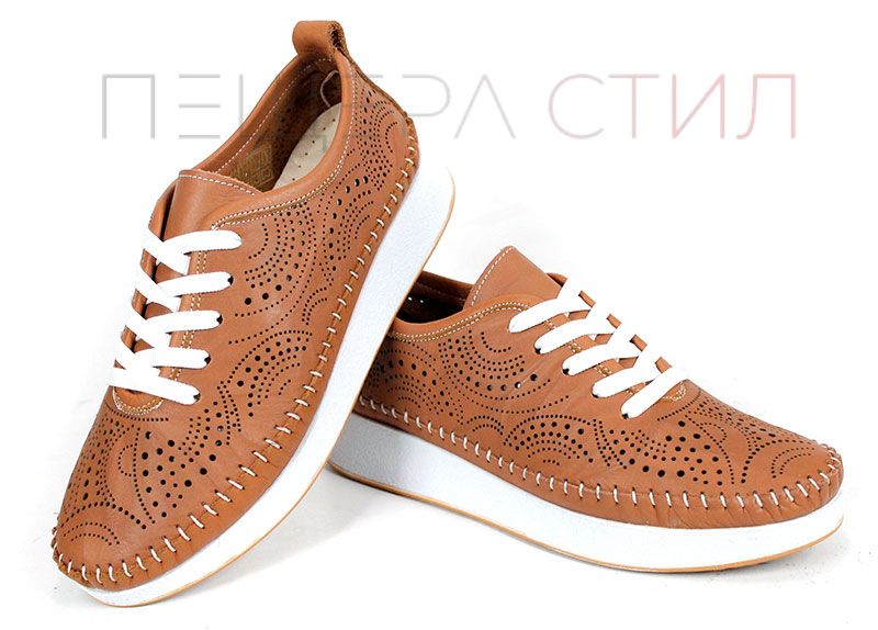 Моделът Luna Soft в светло кафяв цвят съчетава практичност, лекота и изчистена визия, подходяща за ежедневието през топлите месеци. Горната част е от висококачествена естествена кожа с фина перфорация, която осигурява отлична проветривост и усещане за свежест дори в най-горещите дни.