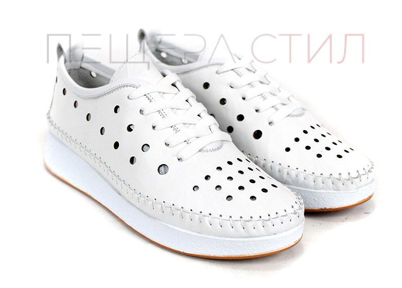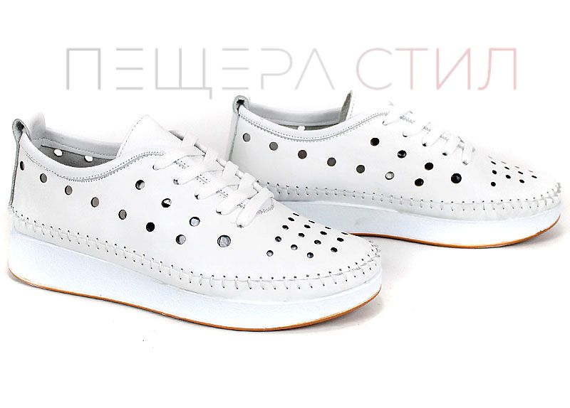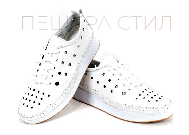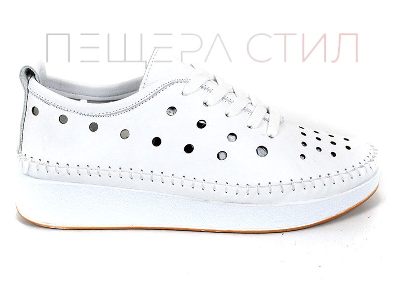 Elia Move – бели дамски летни обувки от естествена кожа с перфорация