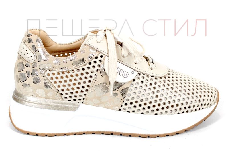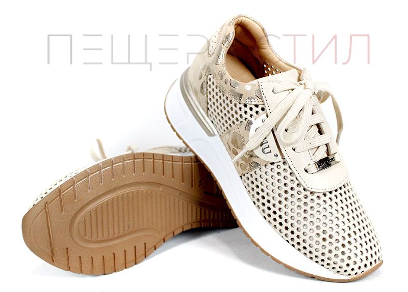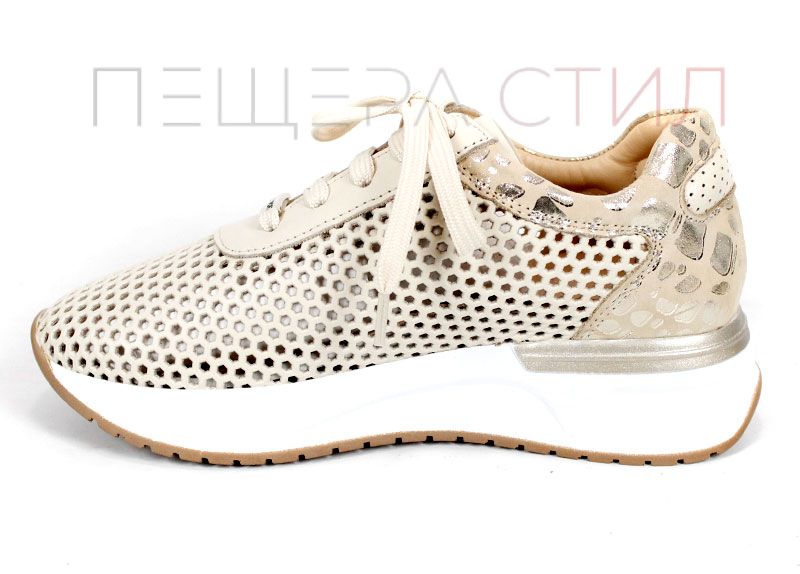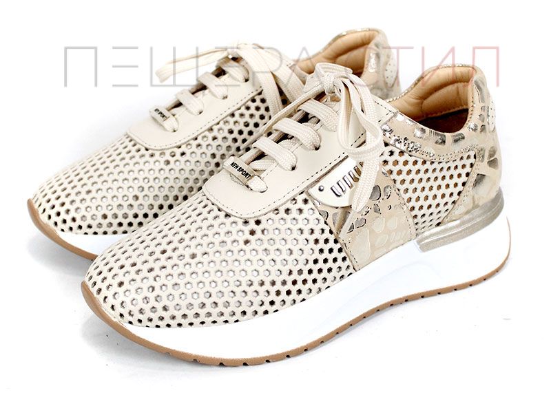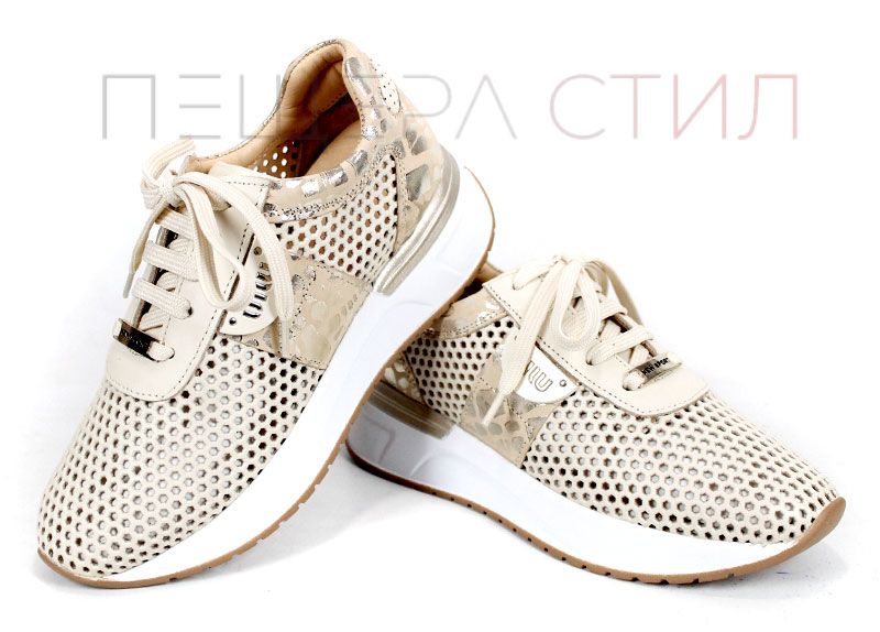 Soft Edge – дамски сникърси в бежово от естествена кожа с перфорация