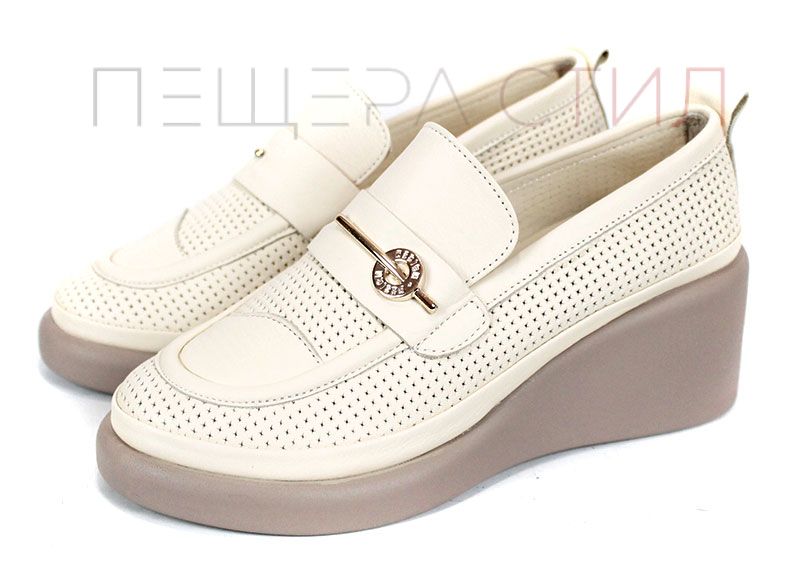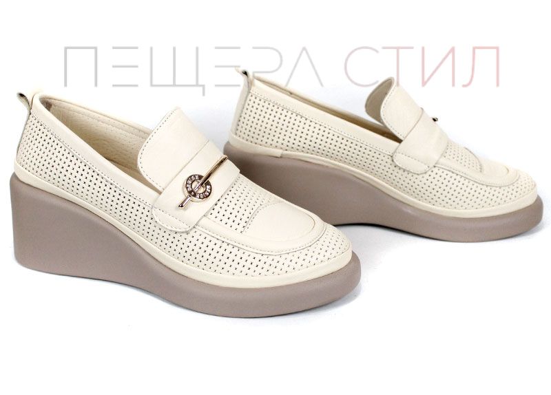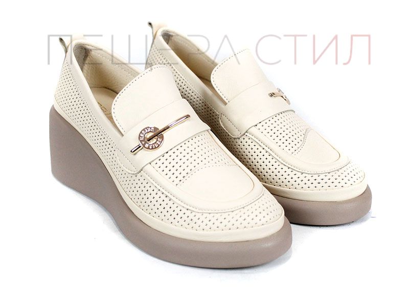 City Aura – дамски летни обувки от естествена кожа с перфорация и клин платформа