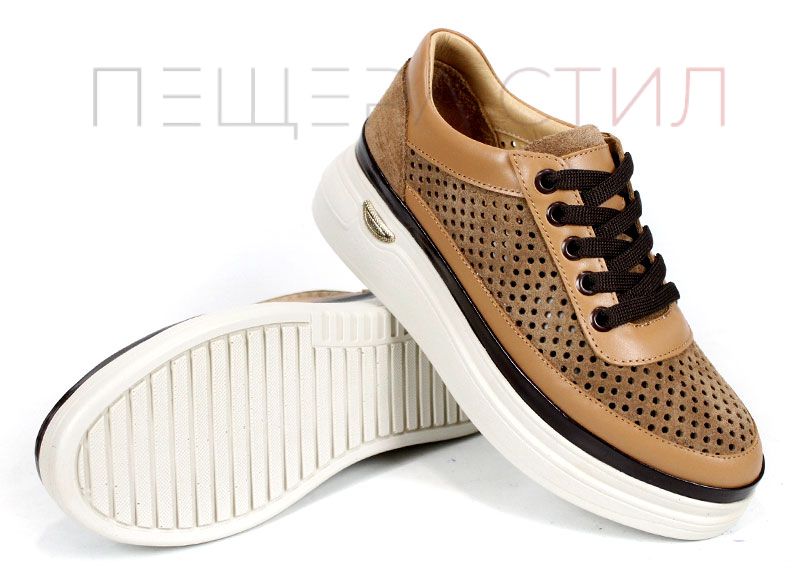 Моделът Bella Form е създаден за жени, които търсят ежедневни обувки с модерен силует и максимален комфорт. Горната част е изработена от висококачествен естествен велур в светло кафяв нюанс, с прецизна перфорация за по-добра вентилация през топлите месеци. Акцентите от светло кафява естествена кожа придават завършен и стилен вид.
