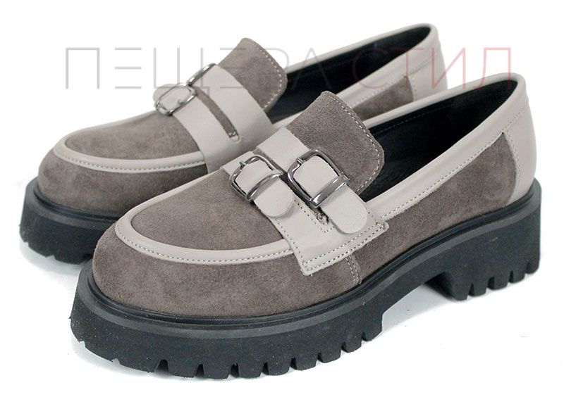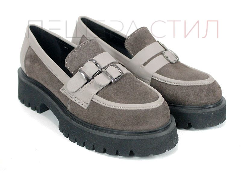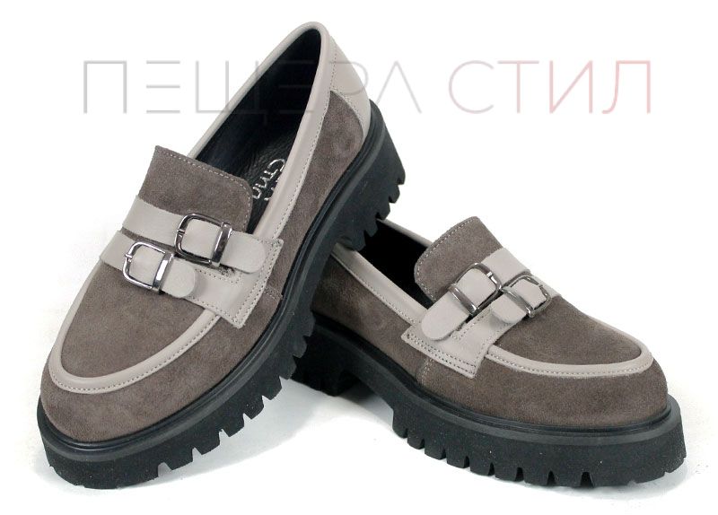 Mira Belle– дамски лоуфъри от естествен велур и естествена кожа в цвят визон