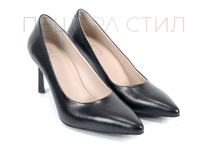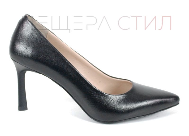 Дамски стилето обувки от естествена кожа с ток 8 см в черно
