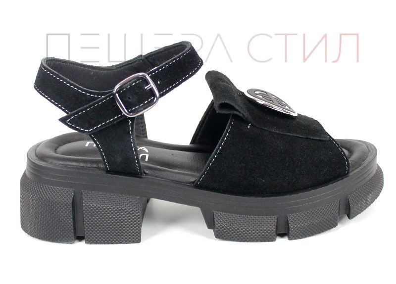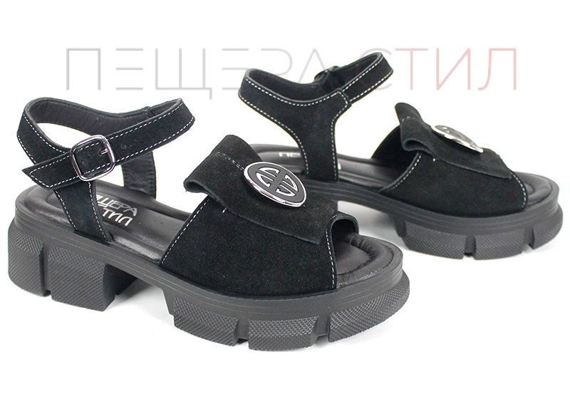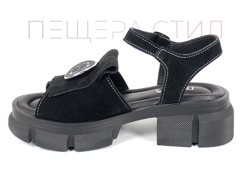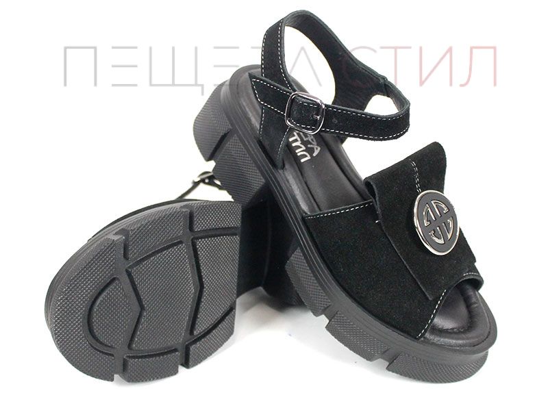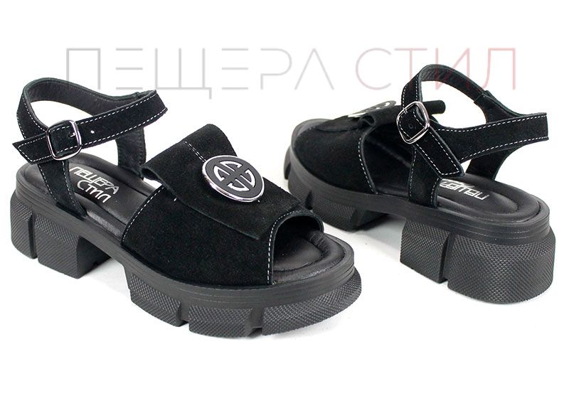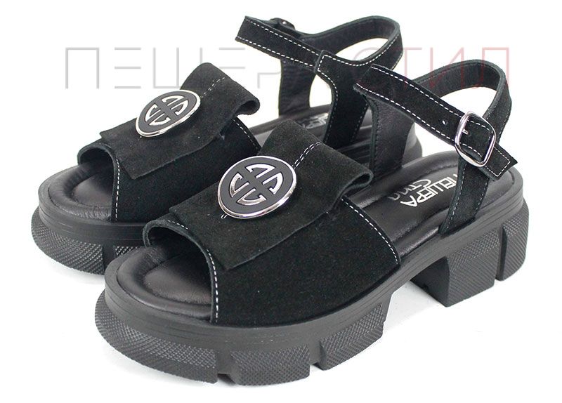 Alvera Mode – дамски сандали от естествен велур в черно с масивно ходило