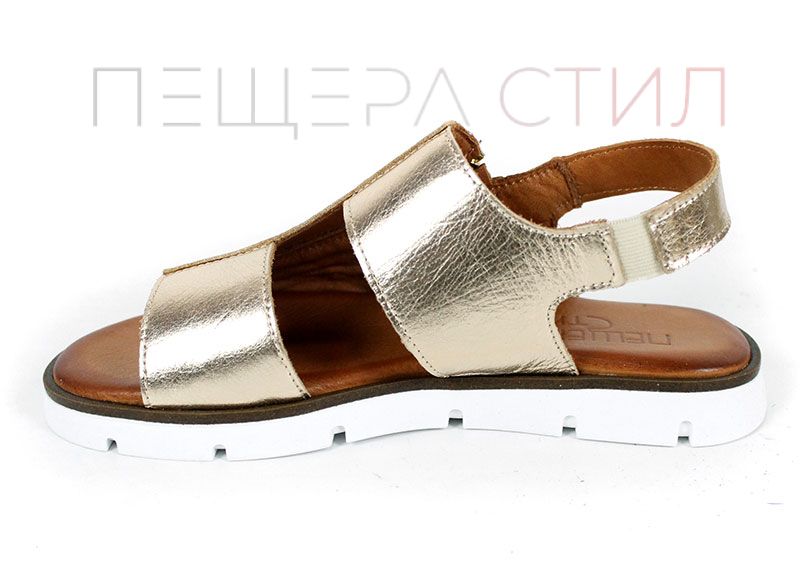 Viva Línea – дамски ниски сандали от естествена кожа в злато