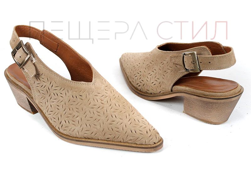 Aura Clara е дамско сабо от естествен велур в цвят канела, вдъхновено от каубойския стил. Моделът се отличава с елегантна перфорация, която осигурява добра вентилация и комфорт при носене през топлите месеци.