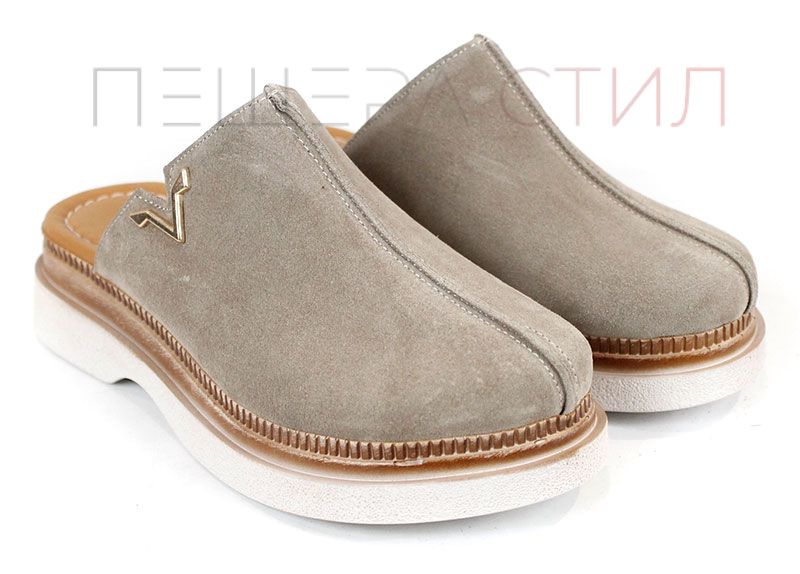 Сабо Velvet Step – мек велур и ежедневен комфорт в цвят визон
