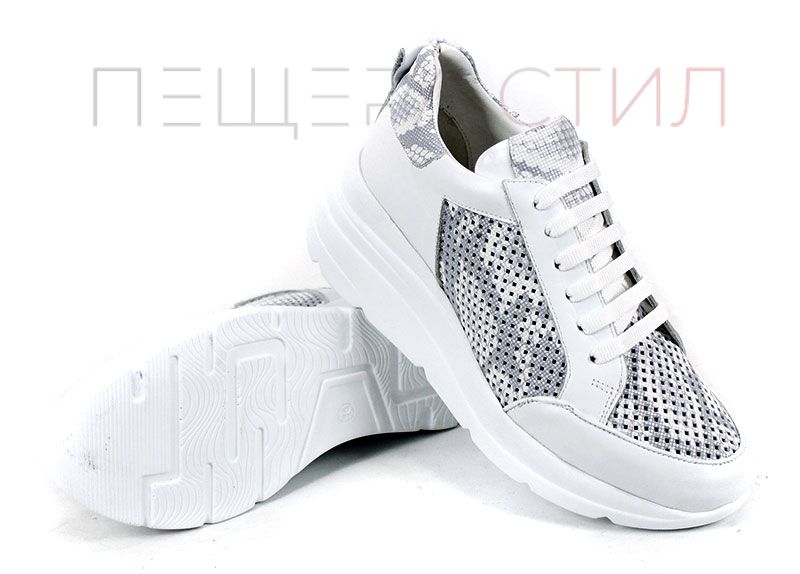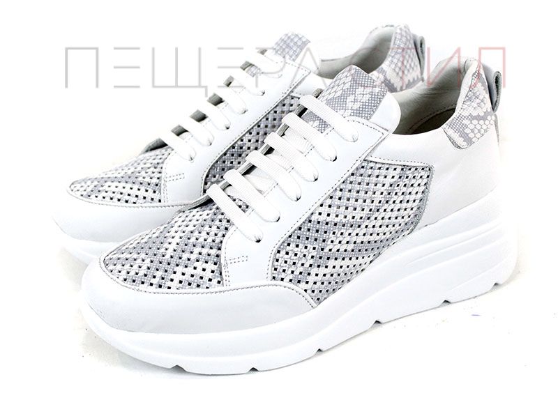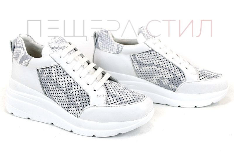 Modern Allure е дамска спортна обувка от естествена кожа с перфорация в бяло и сиво. Моделът е предназначен за ежедневно носене и осигурява добра вентилация и комфорт.