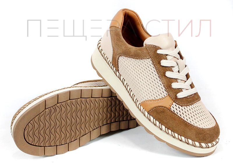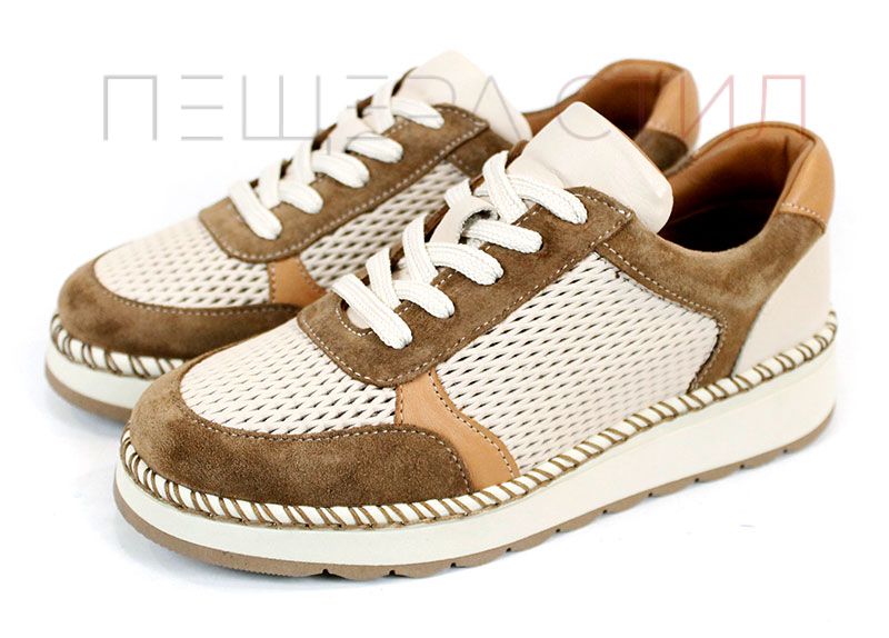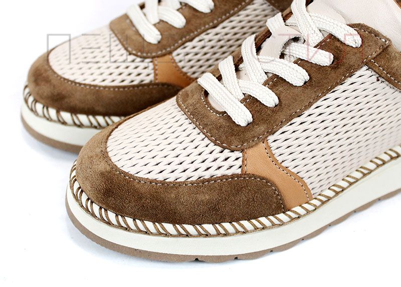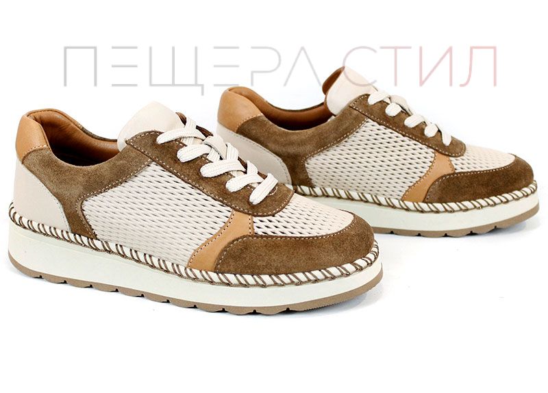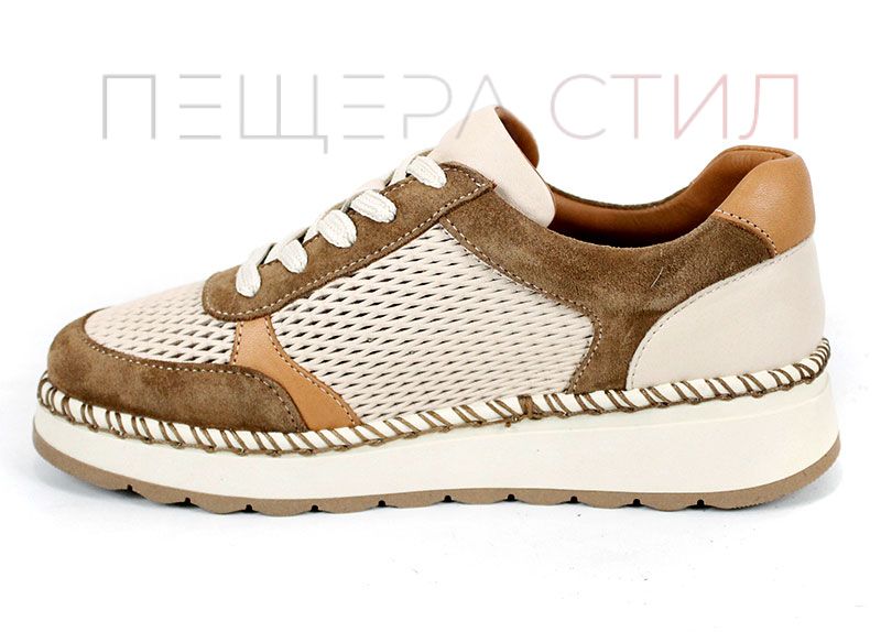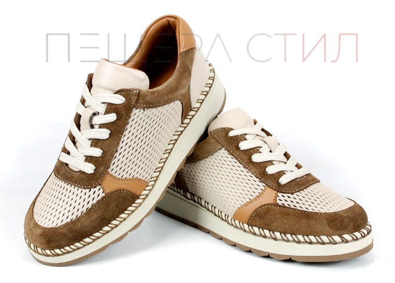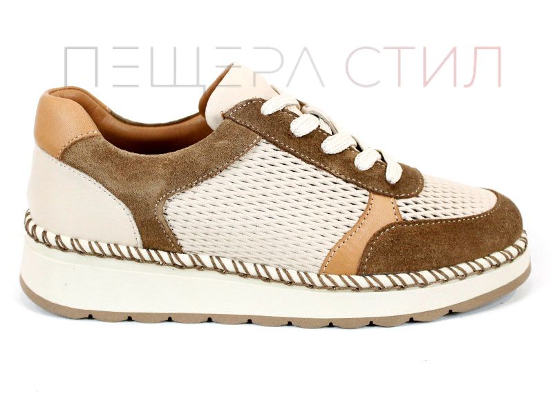 Елегантен и изключително удобен модел, създаден за активното ежедневие през топлите дни. Mirela Vento впечатлява с балансирана цветова комбинация от бежово и светло кафяво, която придава мек и стилен характер. Перфорираната естествена кожа осигурява отлична вентилация, а лекото ходило гарантира комфорт при всяка крачка – от сутрин до вечер.