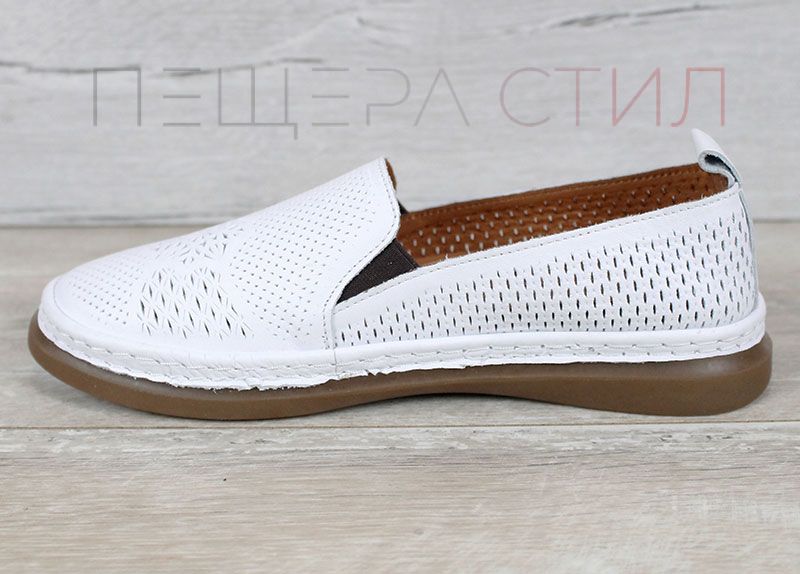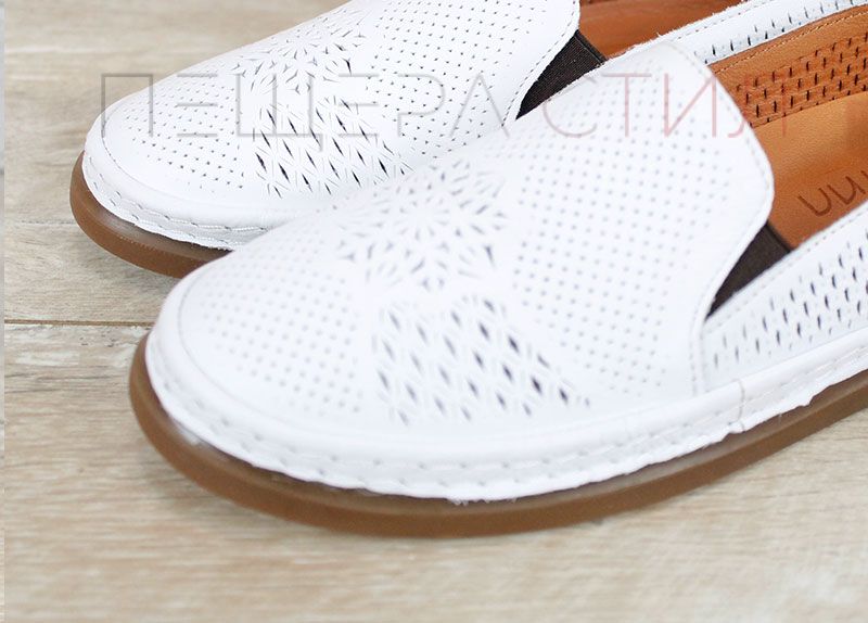 Ситната перфорация придава елегантен завършек и осигурява добра вентилация, което прави обувките подходящи за продължително носене през деня. Белият цвят подчертава чистата линия на дизайна и позволява лесно комбиниране с различни стилове.