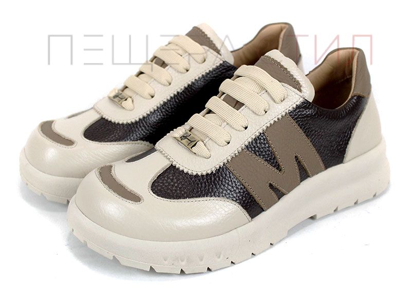 Virella Note – дамски сникърси от естествена кожа в кафяво и бежово