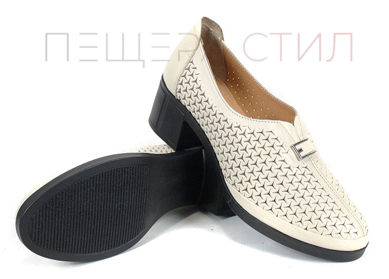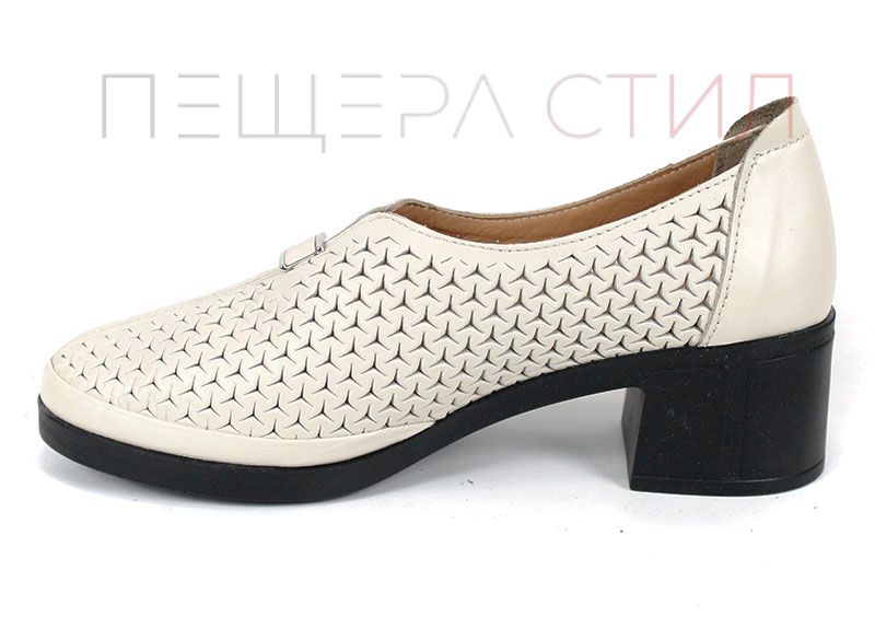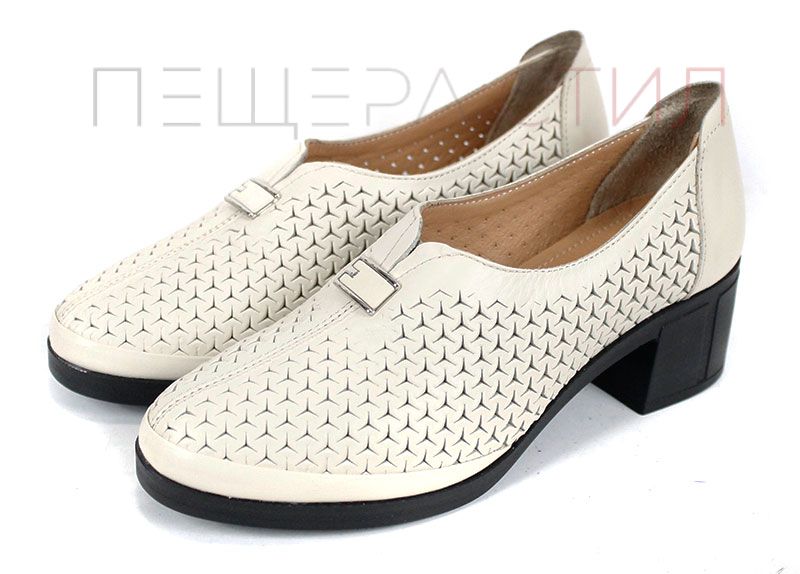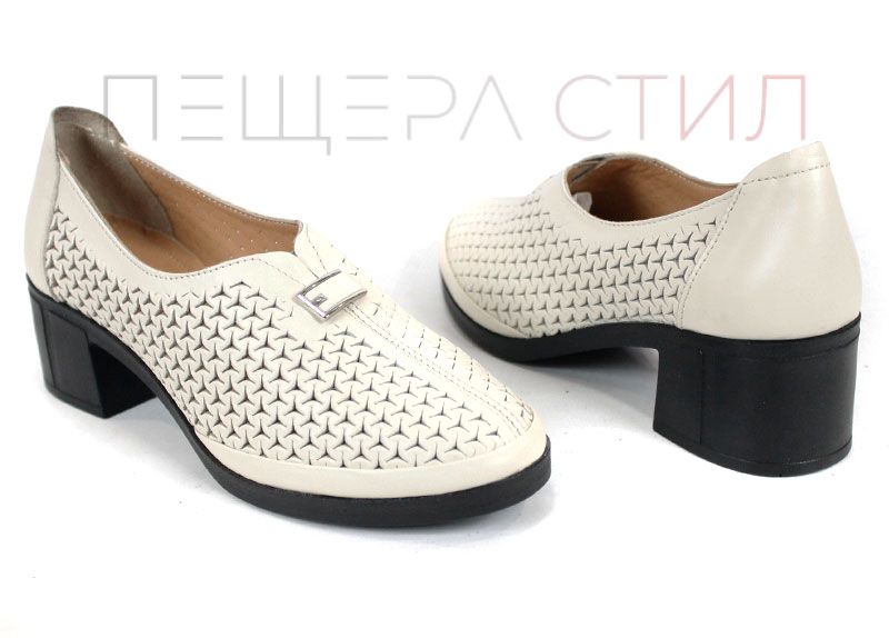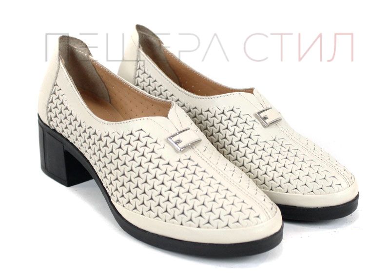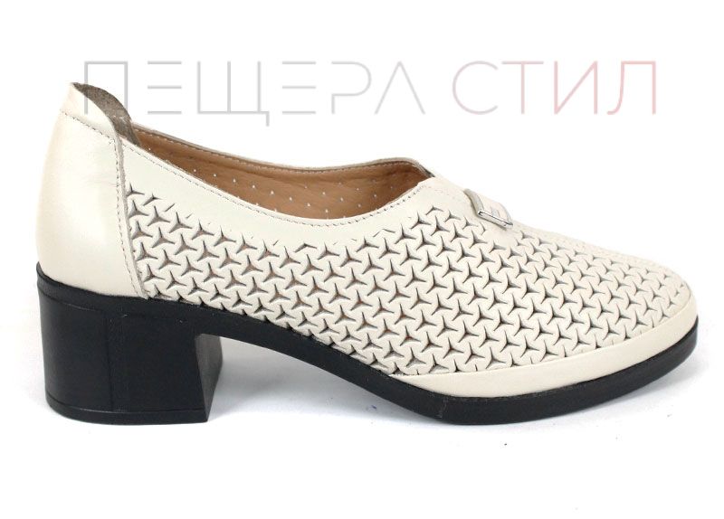 Лек и универсален модел за топлите дни – обувки от естествена кожа в бежово с перфорация и стабилен нисък ток. Подходящи за ежедневие и по-елегантни визии.