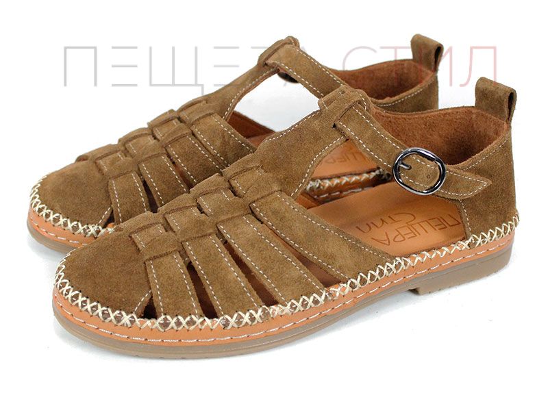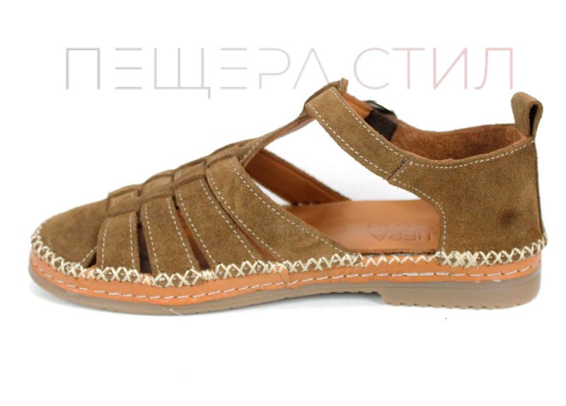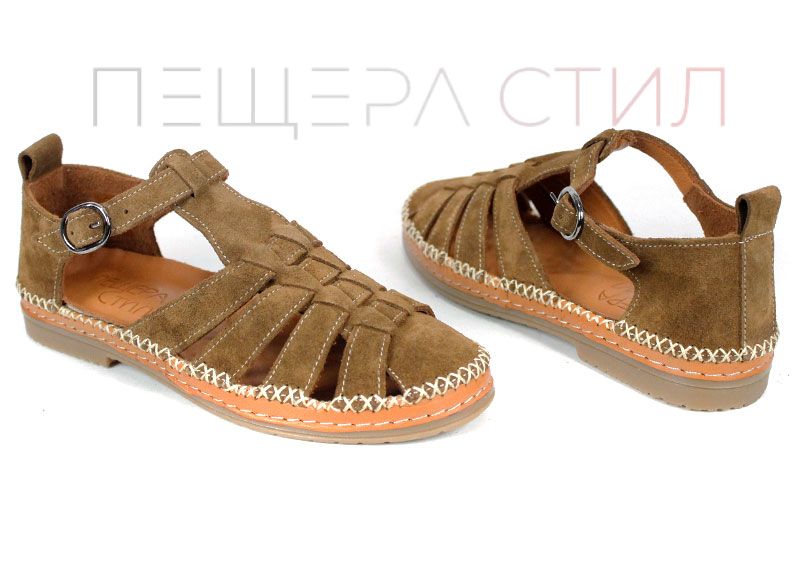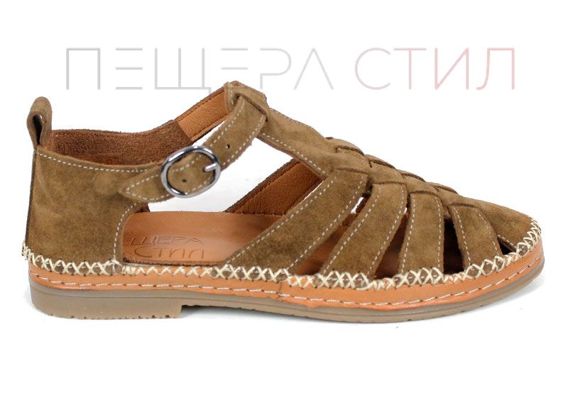Novira Sense – дамски велурени сандали в светло кафяво с естествен комфорт и ръчен акцент