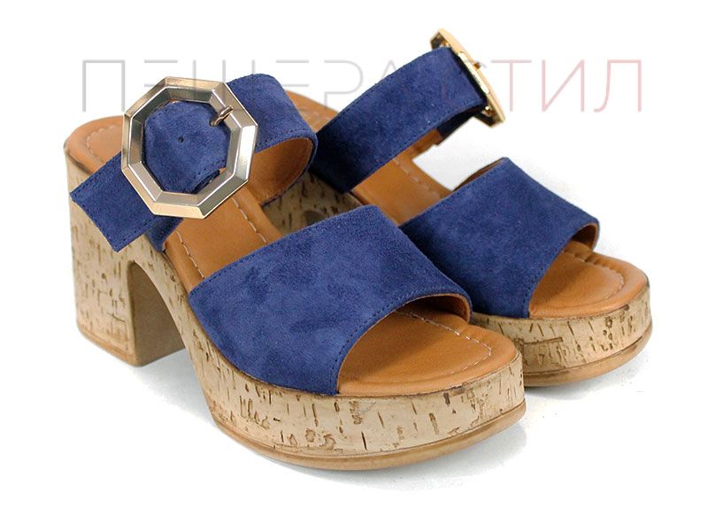Selenа Aria – дамски чехли на платформа от естествен велур в синьо