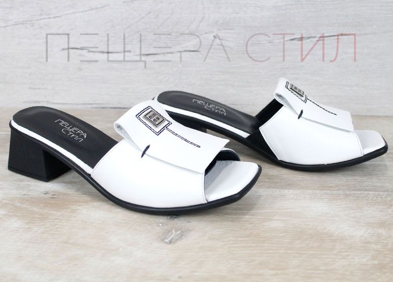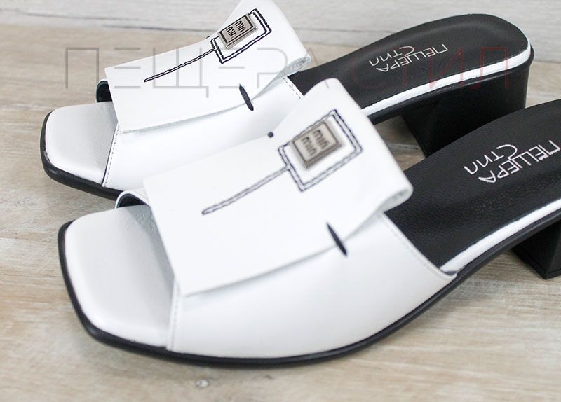 Mirela Doro – дамски чехли на ток от естествена кожа в бяло