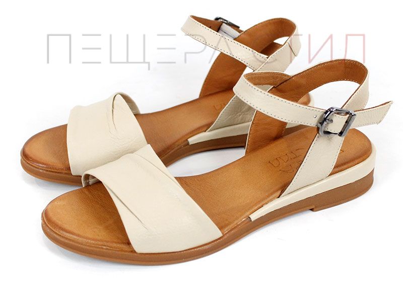 Nerelle Vita – дамски сандали на ниско ходило от естествена кожа в бежово