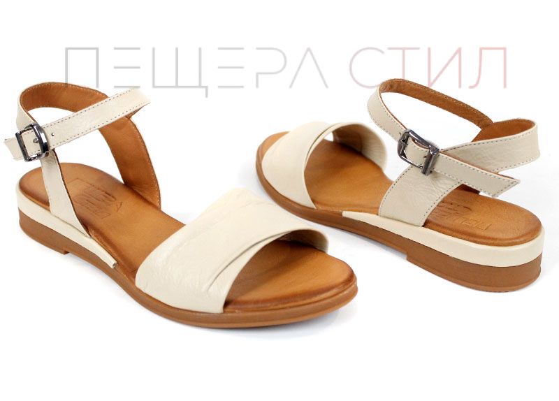 Дамски сандали от естествена кожа в бежово, създадени за максимален комфорт в ежедневието и продължително носене. Моделът е изчистен и практичен, с ниско ходило и мека стелка, които осигуряват стабилност и лекота при всяка стъпка. Универсалният дизайн позволява лесно комбиниране с различни визии, което ги прави надежден избор за активното ежедневие.