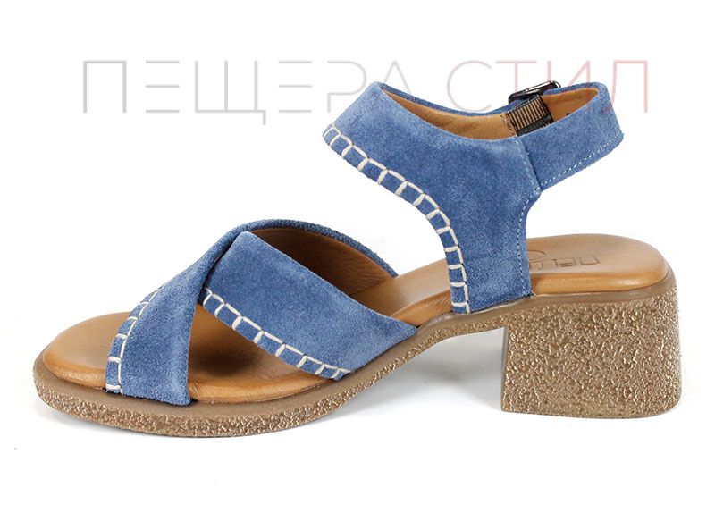Calista Mare – дамски сандали на ток от естествен велур в синьо