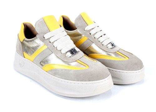 Дамски сникърси Авилета – визон кожа и велур със златен акцент, хастар и стелка от естествена кожа