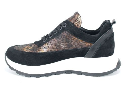 Дамски ретро сникърси Auria Tempo от естествен велур – черно с бежови акценти